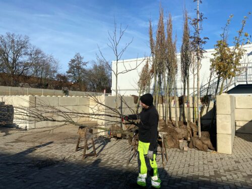 In den kommenden Wochen werden im gesamten Gemeindegebiet weitere Baumpflanzungen durchgeführt. Derzeit laufen die vorbereitenden Arbeiten durch den Bauhof. Die Pflanzlöcher werden ausgehoben, geeignetes Substrat eingebracht und die jungen Bäume durch sorgfältige Kronenschnitte für das Anwachsen vorbereitet. Anschließend erfolgt die Pflanzung von insgesamt 50 neuen Bäumen. Am Waldfriedhof wird es zehn Pflanzungen geben sowie sieben weitere Bäume am Waldfestplatz. Nach Ablauf der Liegezeiten am „Alten Friedhof“ ist die Nutzung der Flächen als Park angedacht, als neue Schattenspender werden zwanzig neue Bäume gesetzt. Die übrigen Bäume werden im Straßenbegleitgrün, an Kindertagesstätten und Spielplätzen ihren Platz finden.