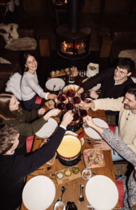 Auffällig ist auch, wie gut der neu gestaltete Außenbereich angenommen wird. Vor dem Fondue noch eine Runde Eisstockschießen, dazu ein heißer Glühwein – das passt nicht nur zur Jahreszeit, es macht den Abend ein bisschen „Ausflug“ statt nur „Essen gehen“. Gerade für Gruppen aus Nußloch und der Umgebung ist das ein angenehmer Start, weil man sich draußen trifft, ankommt, ratscht – und erst danach in die Hütte wechselt.