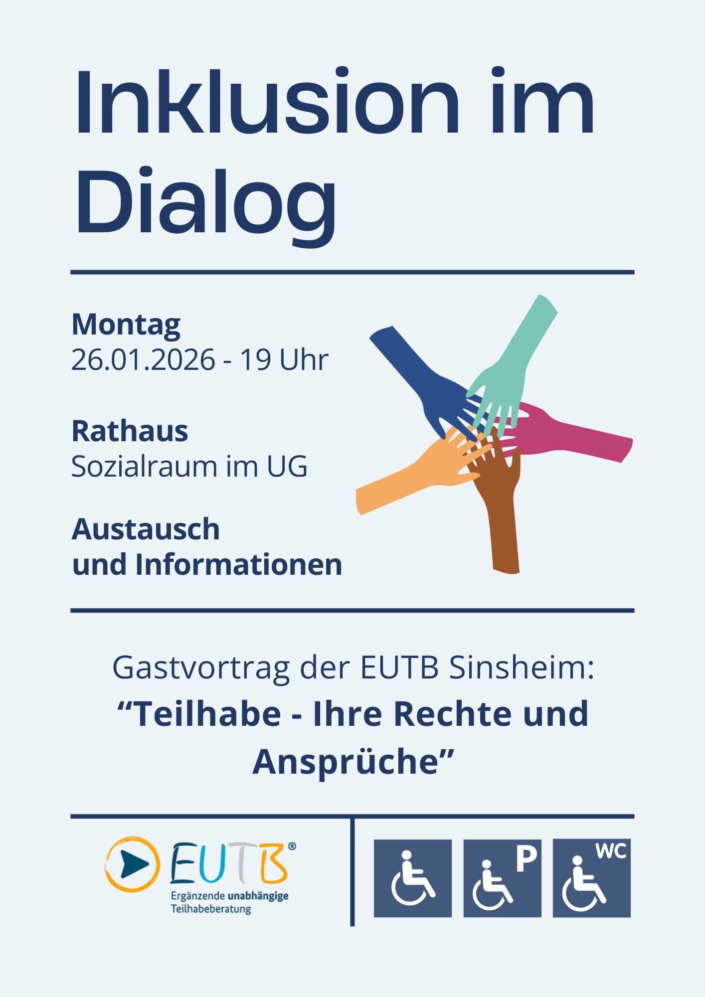 (mar 16.01.25) Die Gemeinde Nußloch lädt alle Menschen mit Behinderung und ihre Angehörigen herzlich zu einem Austausch- und Informationsabend ein: