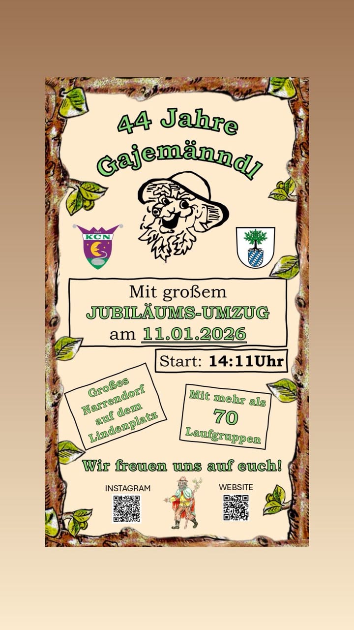 wir feiern 44 Jahre Gajemänndl Nußloch – und zu diesem besonderen Anlass laden wir euch herzlich zu unserem Jubiläumsumzug am 11.01.2026 ein!