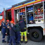 Im weiteren Verlauf wurden die Teilnehmenden in zwei Arbeitsgruppen aufgeteilt. Die erste Gruppe widmete sich intensiv der Fahrzeugkunde. Im Fokus stand dabei die Frage, welche Geräte und Materialien auf den einzelnen Fahrzeugen verladen sind und welchen Zweck diese im Einsatz erfüllen. Die Jugendlichen hatten die Gelegenheit, die Ausrüstung aus nächster Nähe genau zu betrachten und die konkrete Anwendung im Ernstfall ausführlich zu besprechen.