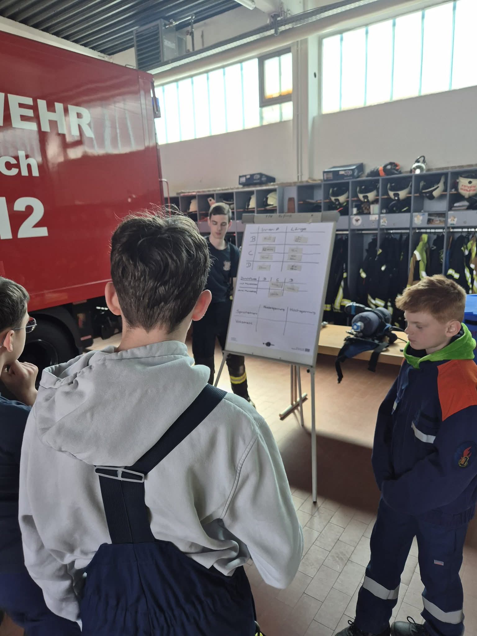 (jfw 12.4.26) Am vergangenen Samstag versammelten sich die Mitglieder der Jugendfeuerwehr zu einer vielfältigen Übung, die sich schwerpunktmäßig mit den Feuerwehrfahrzeugen und der dazugehörigen Ausrüstung befasste.