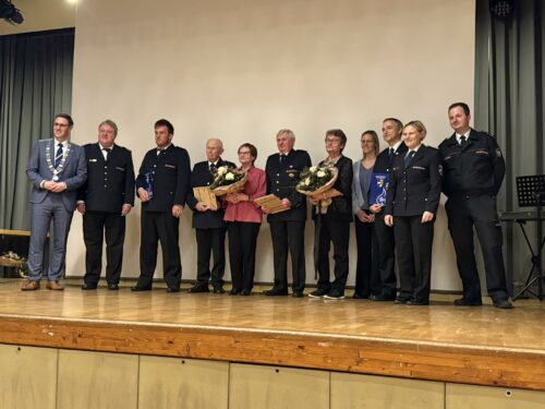 Die Feuerwehr Nußloch war beim Neujahrsempfang mit mehreren Auszeichnungen vertreten. Vier Kameraden aus den eigenen Reihen wurden für ihr langjähriges und engagiertes Wirken geehrt. Der Kreisfeuerwehrverband Rhein-Neckar verlieh die Ehrennadel in Bronze an Fabian Dietz für zehn Jahre aktiven Feuerwehrdienst. Die Ehrennadel in Silber erhielt Christian Kleindienst für 20 Jahre Einsatz.