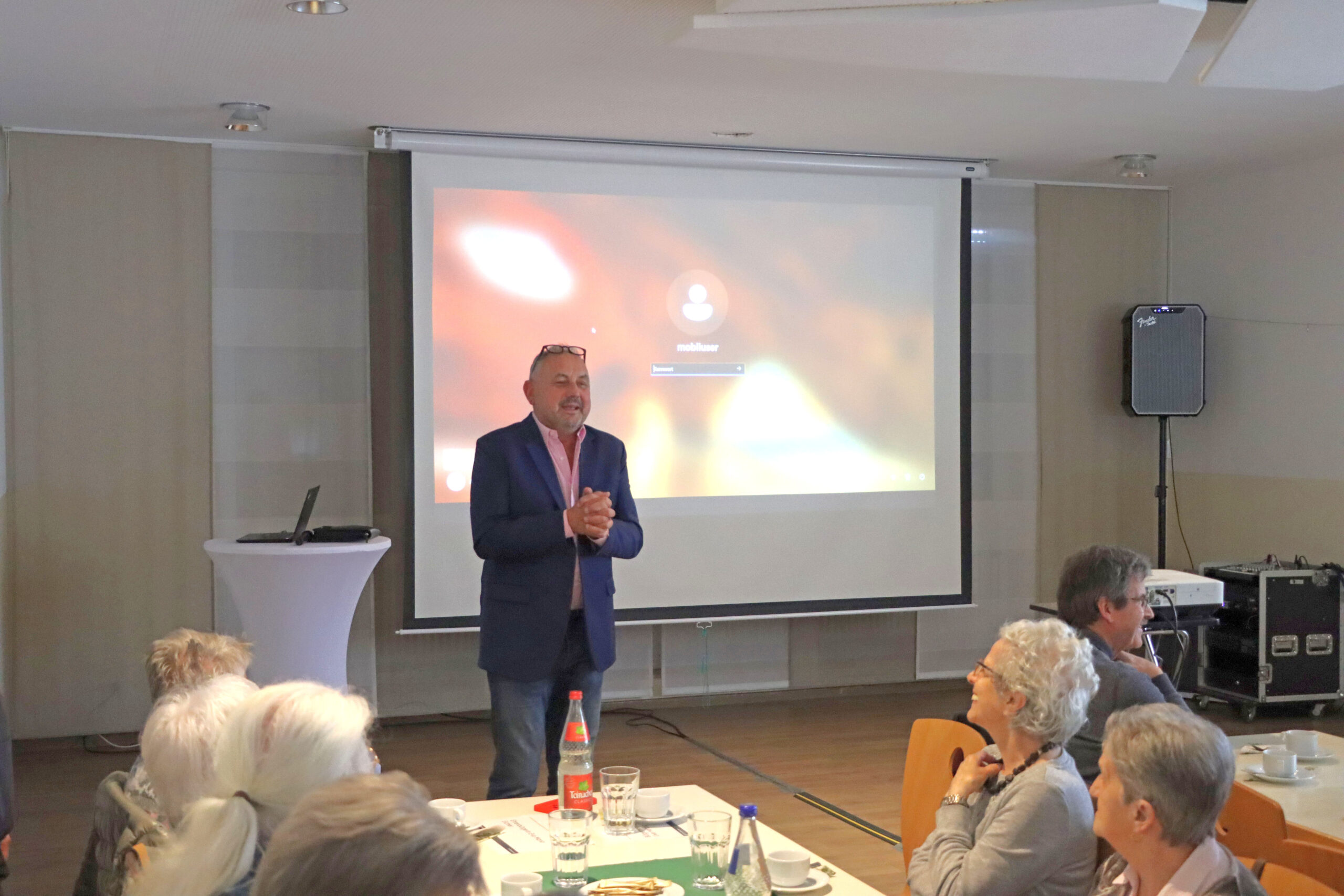 Erster Bürgermeisterstellvertreter Uwe Herzog begrüßt die Gäste im Gesellschaftsraum des Walter-Reinhard-Stadions. Foto: Gemeinde Sandhausen