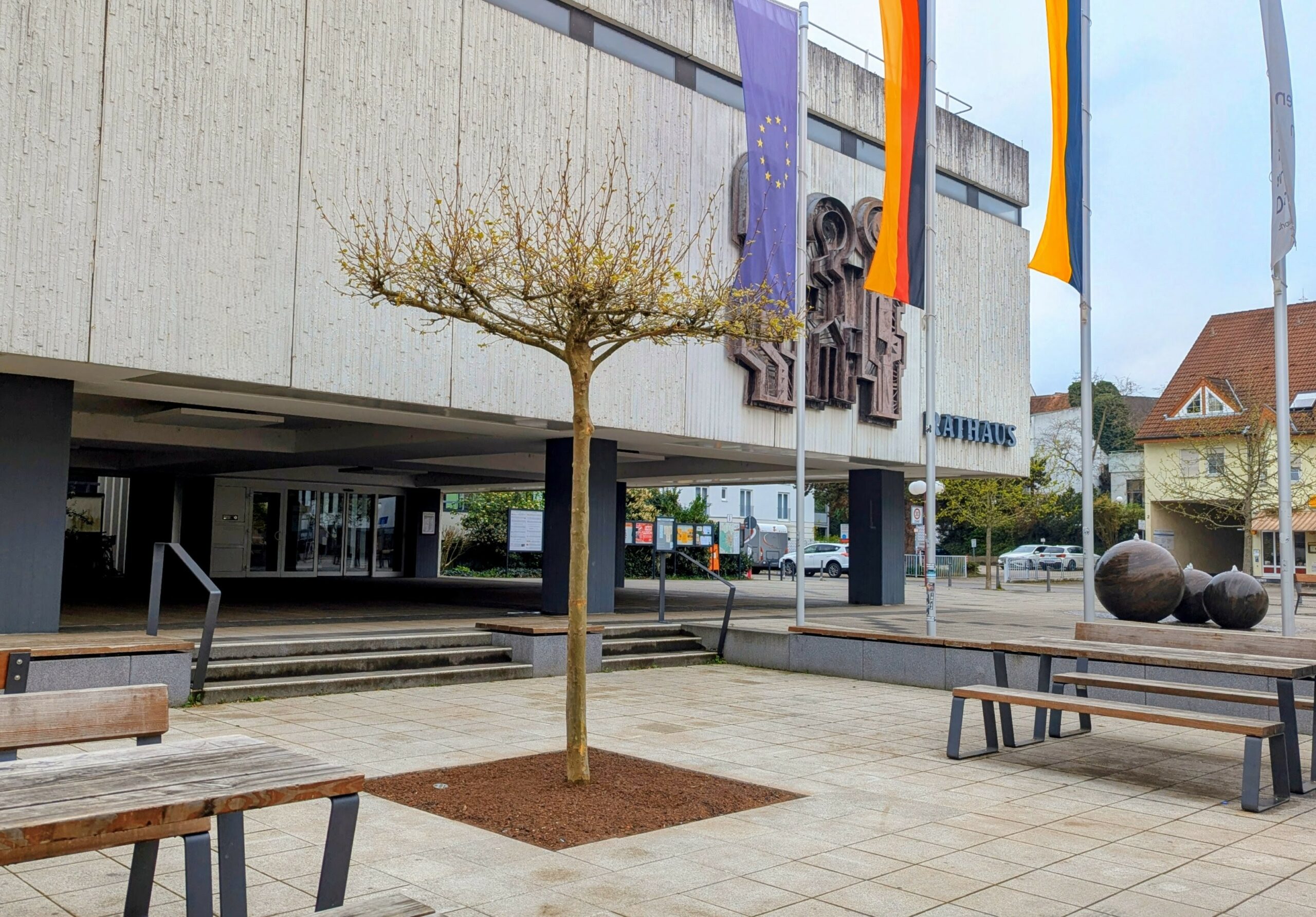 Platane auf Vorplatz des Rathauses gepflanzt