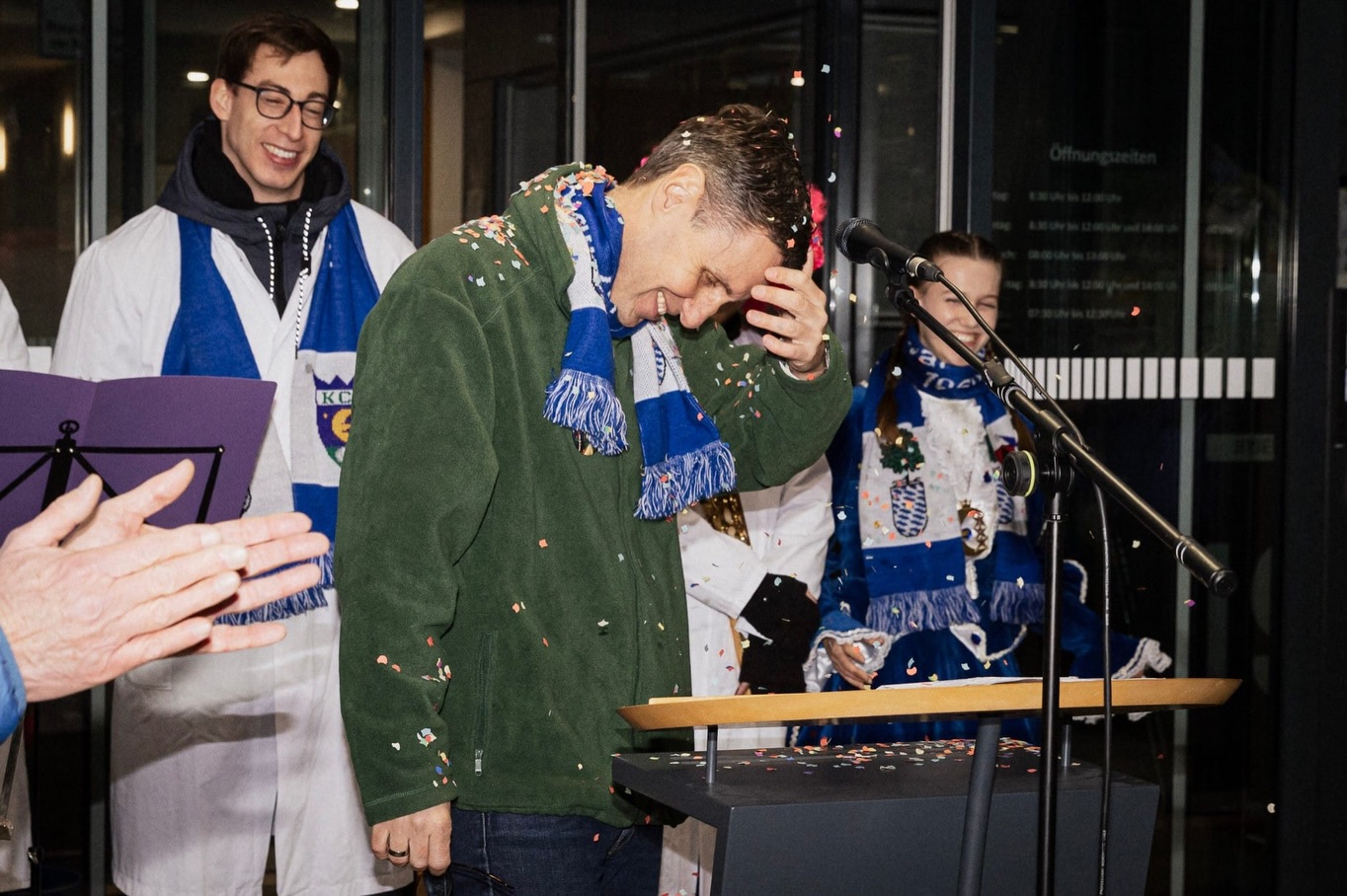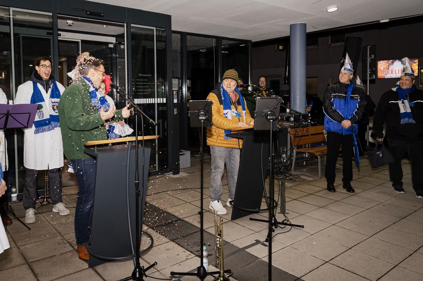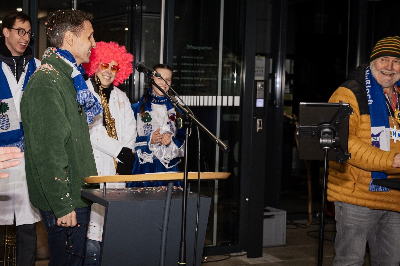 Besonders gefreut hat mich, gemeinsam mit Wolfgang Schneider, Nußlochs bekanntestem Büttenredner, in der Bütt zu stehen – auch wenn die Konfetti-Einlage so nicht ganz geplant war.
