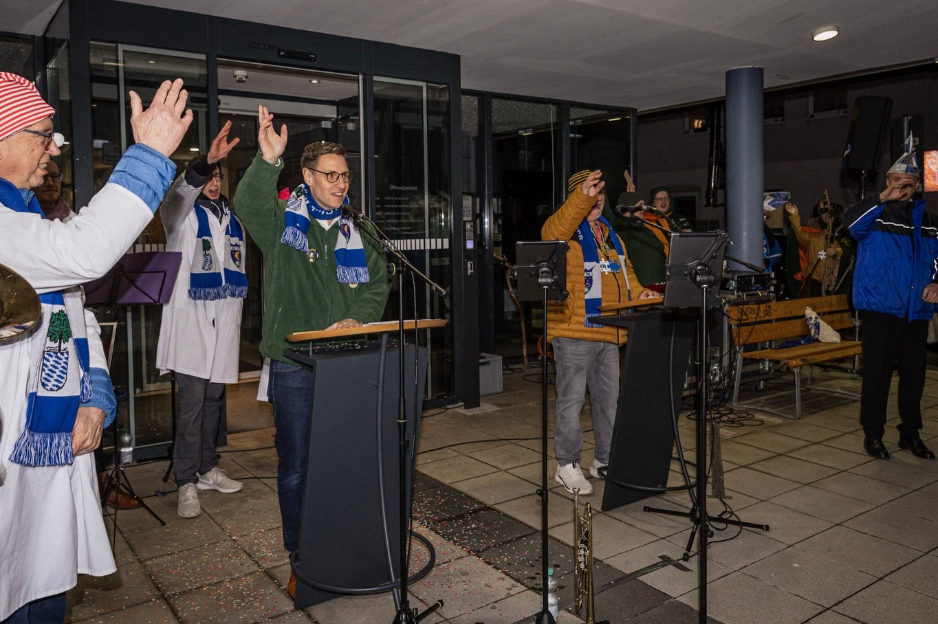 (bmf 12.2.26) Beim Narrenbaumstellen der Gajemänndl am gestrigen Tag wurde wieder ein beeindruckender, kerzengerader Narrenbaum vor dem Rathaus aufgerichtet – ein echter Blickfang und das unübersehbare Zeichen: In Nußloch hat die närrische Zeit begonnen.