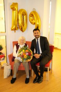 Bürgermeister Hakan Günes gratuliert Helene Wiskandt zum 109. Geburtstag