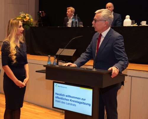 Sitzung des Kreistags in Wiesloch: Landrat Stefan Dallinger verpflichtet Ramona Mauz aus Rauenberg als neue Kreisrätin