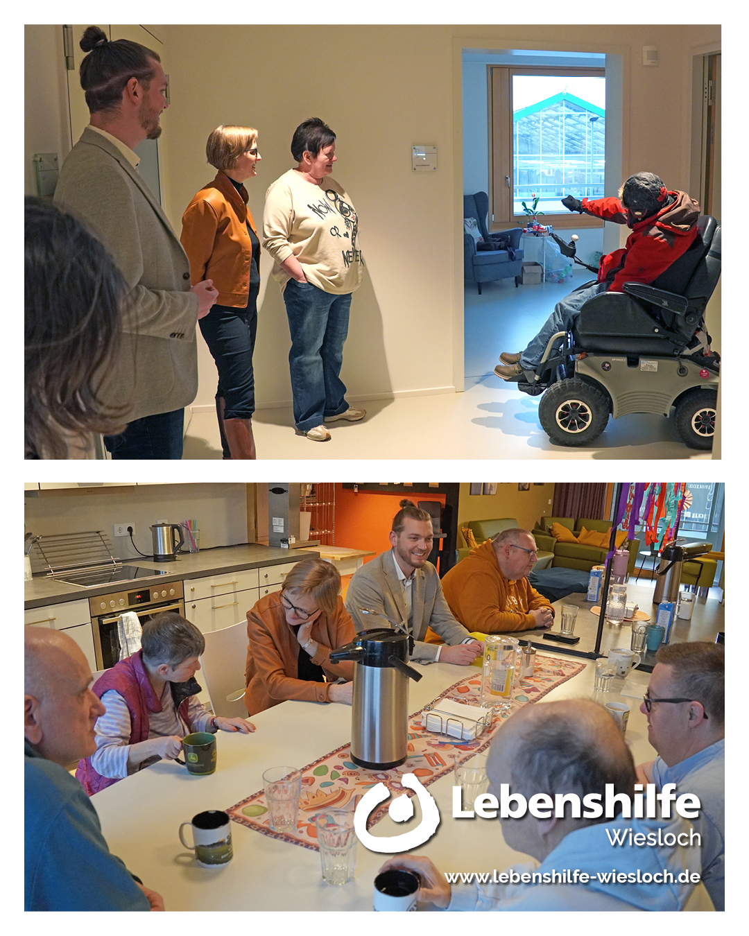Im Haus Breitwiesen wurden die Gäste von Stephan Hinz und David Schloz aus der Geschäftsleitung empfangen. Christine Bauer, stellvertretende Einrichtungsleitung, führte die Besucher durch die Räumlichkeiten und gab Einblicke in den Alltag der Bewohnerinnen und Bewohner. Anschließend nutzten die Gäste die Gelegenheit, bei einer Tasse Kaffee mit einzelnen Klientinnen und Klienten ins Gespräch zu kommen.