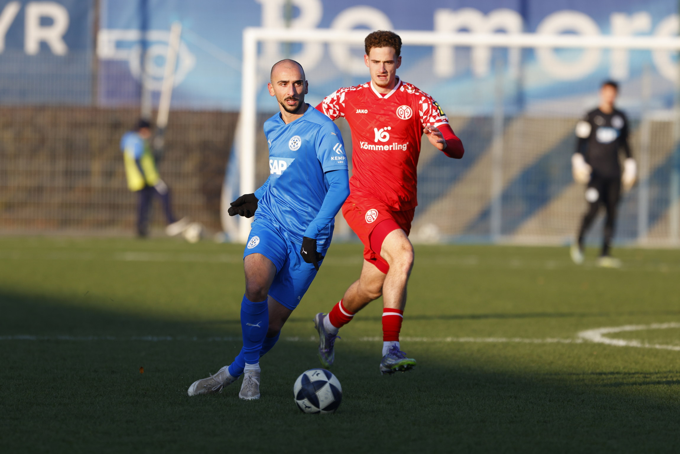 Der FC-Astoria Walldorf hat in der Regionalliga Südwest eine 1:2-Niederlage gegen den FSV Mainz 05 II hinnehmen müssen. Kapitän Marcel Carl erzielte den Walldorfer Anschlusstreffer erst in der Nachspielzeit. Rund 250 Zuschauer verfolgten die Partie bei frostigen Temperaturen und teils vereistem Untergrund, was beiden Mannschaften einen kontrollierten Spielaufbau erschwerte. In der 21. Minute verhinderte Walldorfs Dennis Egel die erste gefährliche Aktion der Gäste gegen den einschussbereiten Fabio Moreno Fell. Kurz vor der Halbzeit gelang Mainz die Führung, als ein abgewehrter Schuss von Yunus Malli bei Daniel Gleiber landete, der sicher zum 0:1 einschob. Walldorf bot sich direkt vor der Pause noch eine Chance, doch ein Abschluss von Felix Kendel wurde von Torhüter Maximilian Kinzig abgewehrt.