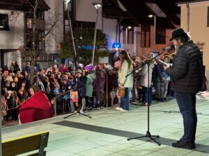 Gemeinsam mit der Feuerwehrkapelle, dem Musikverein und dem Musikzug des Karnevalsclubs zogen die Kinder durch die Dreikönig-, Goethe-, Burg-, Garten- und Sinsheimer Straße in die Werderstraße. Am Rathaus machten sie Halt, wo Diakon Sych von der Seelsorgeeinheit die Martinsgeschichte erzählte. Er ermutigte die Kinder, das Licht ihrer Laternen in die Welt hinauszutragen und so symbolisch Nußloch zum Leuchten zu bringen.