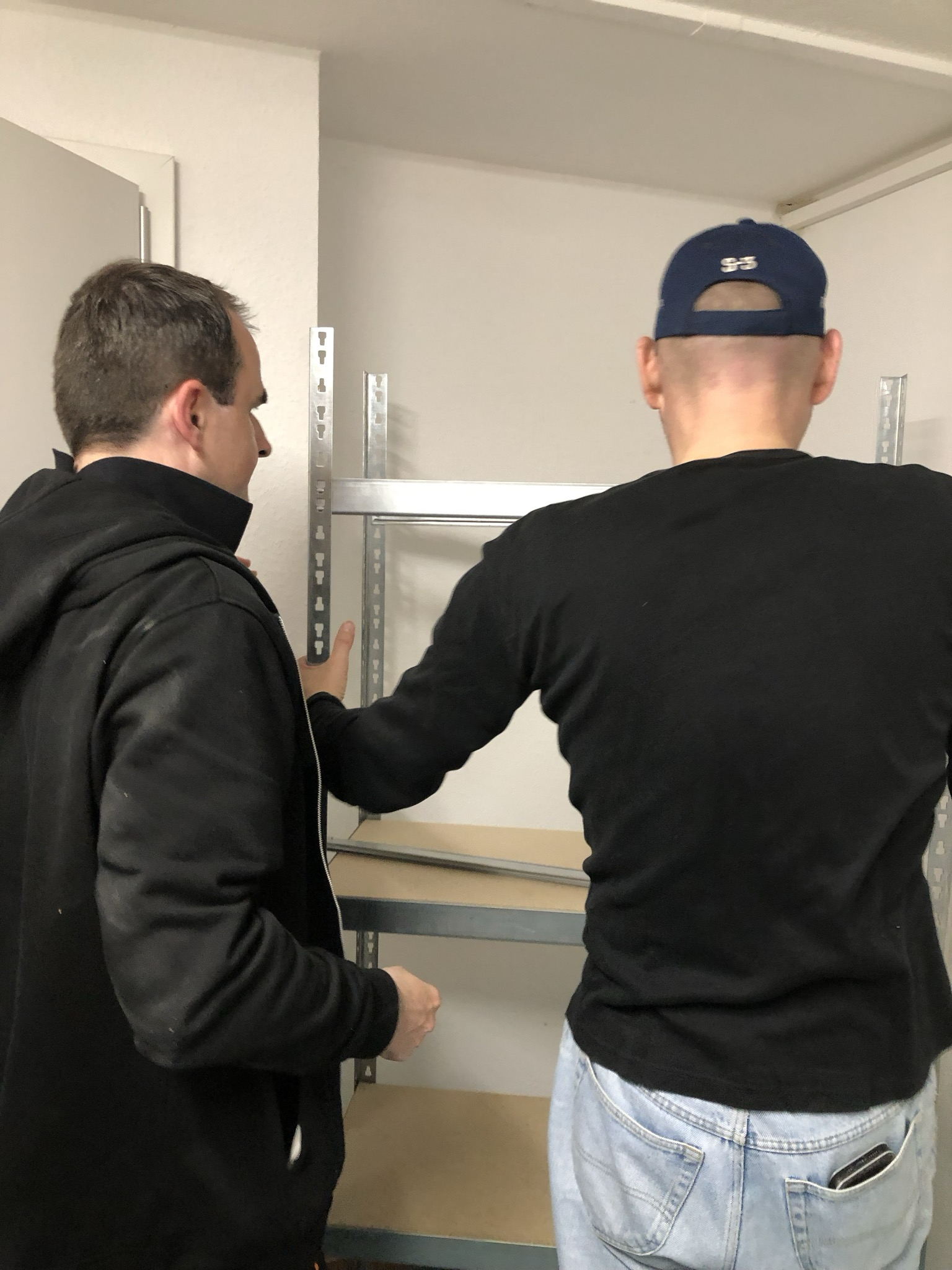 Besonders viel Einsatz zeigten Christiane und Birgit, die über Tage hinweg mit großer Selbstverständlichkeit dort waren, wo gerade etwas zu tun war. Sie packten Kisten, schleppten Material und hielten das Ganze mit ihrer Tatkraft mit am Laufen. Eine ganze Woche lang wurde gepackt, geschleppt und organisiert. Stück für Stück wanderte das Lädl an seinen neuen Ort. Ebenso wichtig war Nicolas, der die Organisation übernahm und selbst mit anpackte.