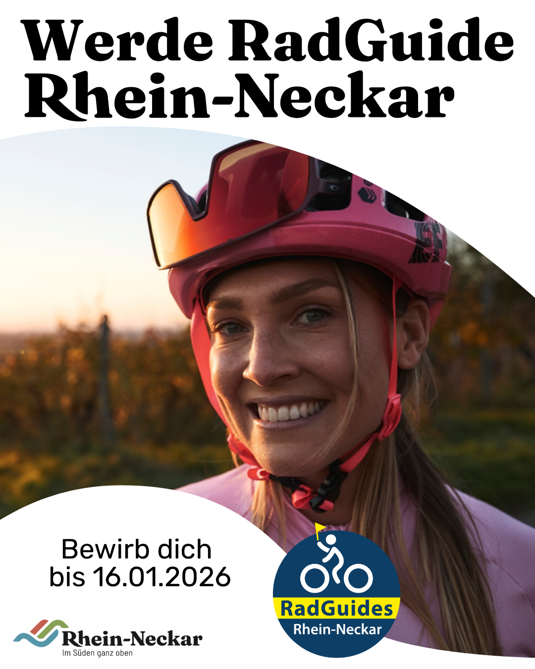 Naturerlebnis, Gemeinschaft – und als Bonus: Bewegung. Im Frühjahr 2026 beginnt die nächste Ausbildungsrunde für die RadGuides Rhein-Neckar – und damit für alle, die Freude am Radfahren, Interesse an Natur- und Kulturthemen sowie Lust auf ehrenamtliches Engagement mitbringen. Seit dem Start des Programms im Jahr 2021 haben sich die RadGuides im Freizeitangebot der Region etabliert. Und der Bedarf wächst weiter: „Unsere Touren zeigen, wie groß das Interesse an qualitativ hochwertigen, geführten Radausflügen ist. Zugleich erleben wir jedes Jahr aufs Neue, wie erfüllend es für die RadGuides selbst ist, ihr Wissen zu teilen und Menschen für unsere Region zu begeistern“, sagt Beate Otto, Tourismusbeauftragte des Rhein-Neckar-Kreises.