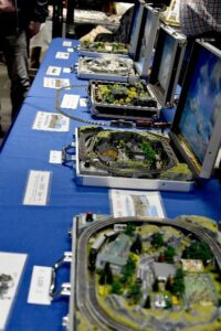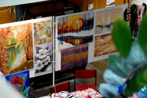 25 Hobbykünstlerinnen und Hobbykünstler nahmen an der diesjährigen Ausstellung teil und präsentierten von Freitagabend bis Sonntagabend eine Vielfalt, die kaum beeindruckender hätte sein können. Von filigranen Häkel- und Strickarbeiten über liebevoll genähte Einzelstücke, handgefertigten Schmuck, feinste Zeichnungen, farbintensive Leinwandarbeiten bis hin zu kunstvoller Fotografie – hier konnte jede Besucherin und jeder Besucher etwas für das eigene Herz entdecken. Detailverliebte Modelleisenbahnanlagen, die in Kofferanlagen hineingearbeitet waren, luden zum Staunen ein. Diese Hingabe zum Detail war für Technikbegeisterte ebenso faszinierend wie für Kunstliebhabende. Prachtvolle Sträuße aus filigransten Blüten, gegossen aus Seife oder Wachs, umhüllten die Gäste mit einem angenehmen Duft. Auch die Schülerinnen und Schüler der Theodor-Heuss-Grundschule bereicherten die Ausstellung unter anderem mit beeindruckenden Federzeichnungen, Flechtschnecken und fantasievollen Interpretationen von eigens entworfenen Wohnhäusern im Stil von Friedensreich Hundertwasser.