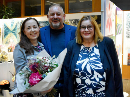 Bereits die Eröffnung am Freitagabend war gut besucht. Die Begrüßung der Gäste übernahm Erster Bürgermeisterstellvertreter Uwe Herzog. Er zeigte sich begeistert vom Ideenreichtum und der Vielfalt der ausgestellten Werke. Auch Andrea Hilbert, die seit Jahren mit großer Sorgfalt und Hingabe die Organisation der Ausstellung übernimmt, zeigte sich beeindruckt von der Qualität und der Vielfalt der Exponate. Zum Schmunzeln brachte sie der „Geburtstag to go“, den sie bis dato noch nicht kannte, der aber zeige, mit wie viel Fantasie und Freude die Künstlerinnen und Künstler am Werk seien. Besonders hob sie die Atmosphäre der neuen Ausstellungsstätte hervor, denn diese fand zum ersten Mal im Rathaus statt, da die Festhalle in diesem Jahr nicht zur Verfügung stand. Der Aufwand sei zwar größer gewesen, doch das Ergebnis könne sich sehen lassen.