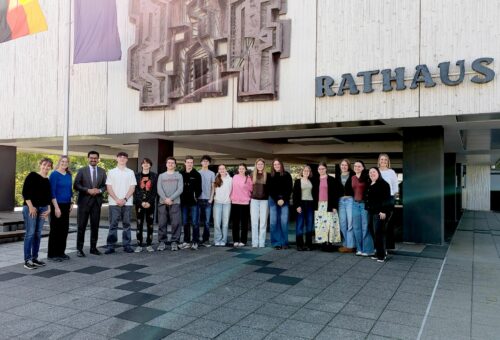 Die insgesamt 13 Schülerinnen und Schüler und ihre Lehrerinnen – Mrs Zaderej und Mrs Muldoon – statteten während ihres zweiwöchigen Aufenthalts einen Besuch im Rathaus ab und wurden von Bürgermeister Hakan Günes herzlich willkommen geheißen. Der Rathauschef bat die Gäste aus den USA in den Großen Ratssaal, wo er ihnen mithilfe einer Präsentation Land und Leute in Sandhausen und Umgebung näherbrachte.