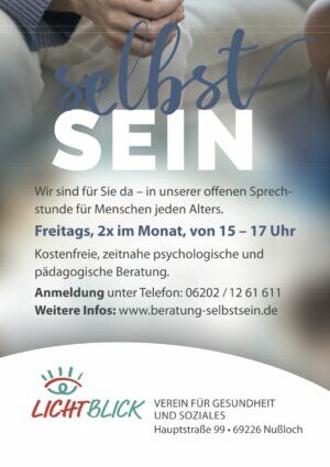 Der Verein Lichtblick e.V. engagiert sich seit seiner Gründung für bürgerschaftliches und soziales Miteinander in Nußloch. Er setzt auf Menschlichkeit und Empathie und bietet mit „SelbstSein“ einen weiteren wertvollen Bestandteil des lokalen Unterstützungsnetzwerks.
