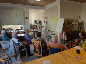 Was den Nachmittag im Wohnzimmer Nebenan ausmachte, war die vertraute Atmosphäre, die man von diesem lebendigen Treffpunkt in Nußloch bereits kennt. Es wurde nicht nur zugehört, sondern auch viel gefragt, ergänzt und ausgetauscht – viele Besucherinnen und Besucher erzählten von eigenen Erfahrungen mit Stürzen in der Familie und davon, wie verunsichernd solche Erlebnisse sein können. Gerade dieser offene Austausch machte deutlich, wie wichtig es ist, das Thema Sturzprävention aus der Tabuzone zu holen und gemeinsam nach Lösungen zu suchen, statt erst nach einem Unfall zu reagieren.