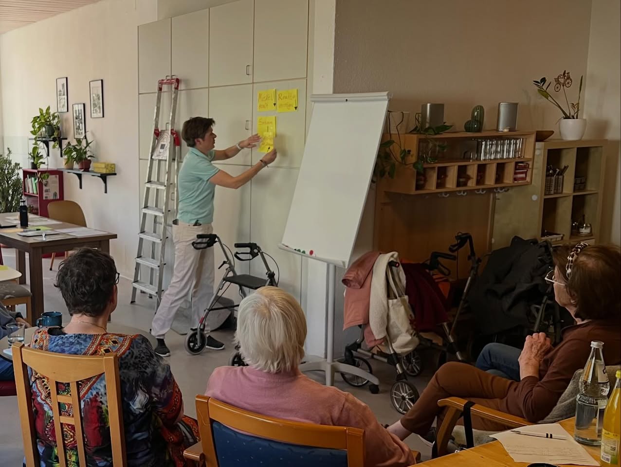 Der Workshop zeigte: Sturzprävention beginnt im Kleinen – Stolperfallen im eigenen Wohnzimmer, im Treppenhaus, in der Routine des Alltags. Und Orte wie das Wohnzimmer Nebenan bieten den idealen Rahmen, um Wissen zu vermitteln, Sicherheit zu schenken und Nachbarinnen und Nachbarn miteinander ins Gespräch zu bringen. Wer beim nächsten Termin dabei sein möchte, sollte sich rechtzeitig bei Carolin Rauth anmelden.