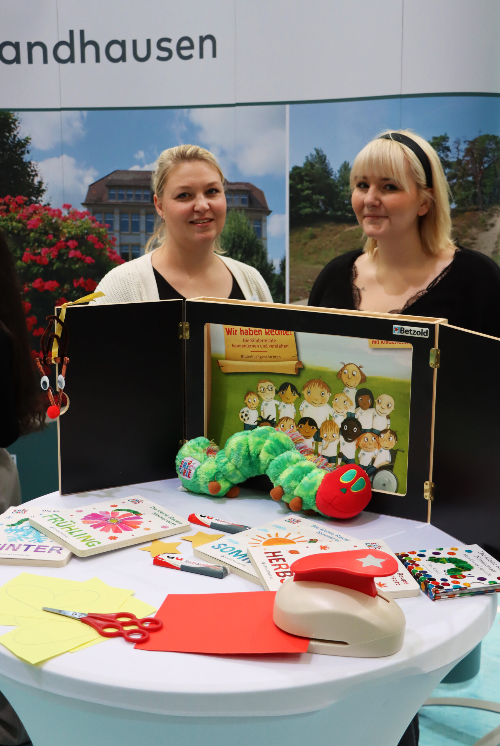 Wer sich mehr für den sozialen Zweig interessiert, war bei Jessica Twartz und Emma Webster aus unserem Team genau richtig. Sie begeisterten die Besucherinnen und Besucher mit ihrem Ausbildungsalltag in der Kinderbetreuung der Gemeinde. Foto: Gemeinde Sandhausen